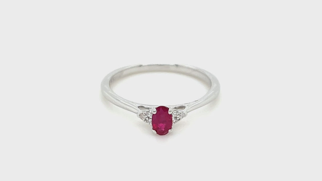 Ruby 0.30ct Diamond 0.03ct Cluster Ring 9k White Gold