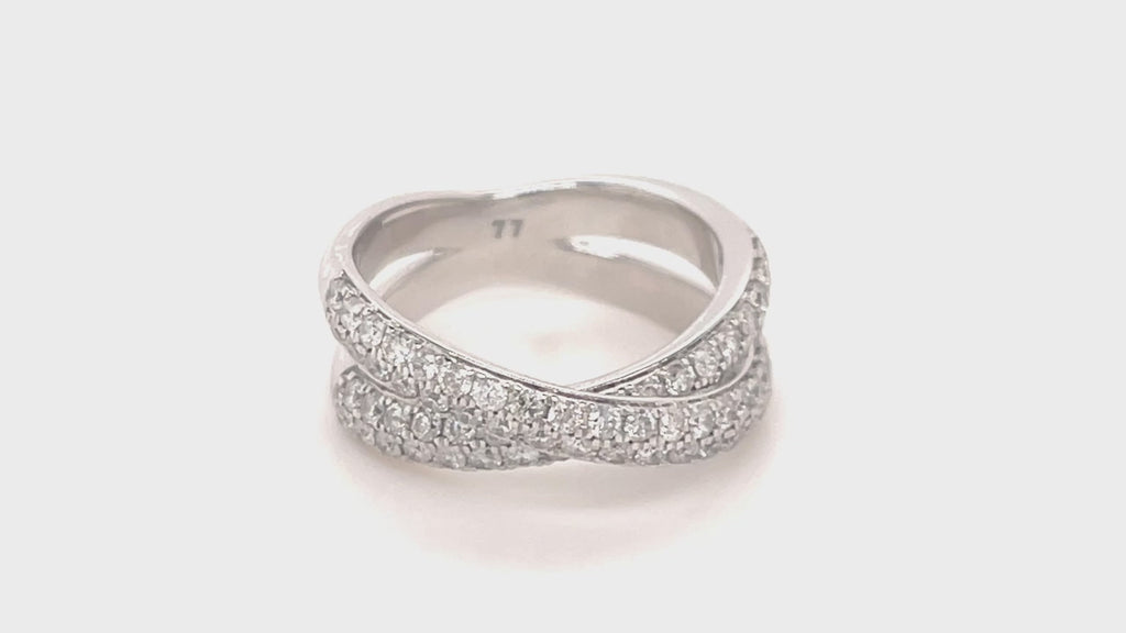 Pave Diamond Half Eternity Crossover Ring 1.00ct G/SI 18k White Gold