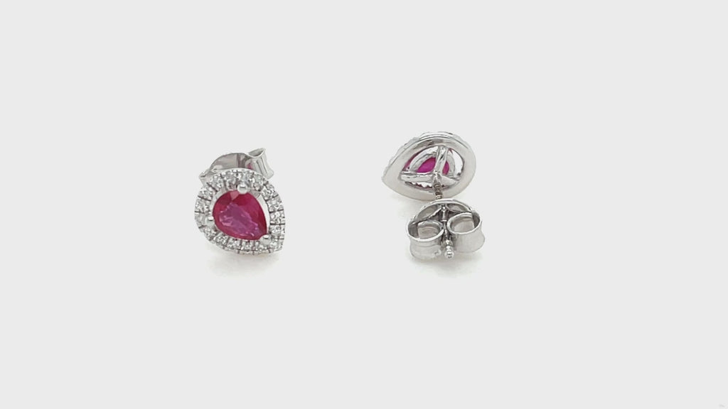 1.00ct Ruby & Diamond Pear Cluster Earrings 18k White Gold