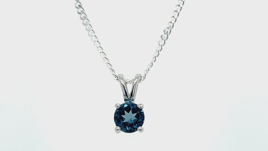 London Blue Topaz Solitaire Necklace Pendant 0.60ct in 9k White Gold 5.0mm