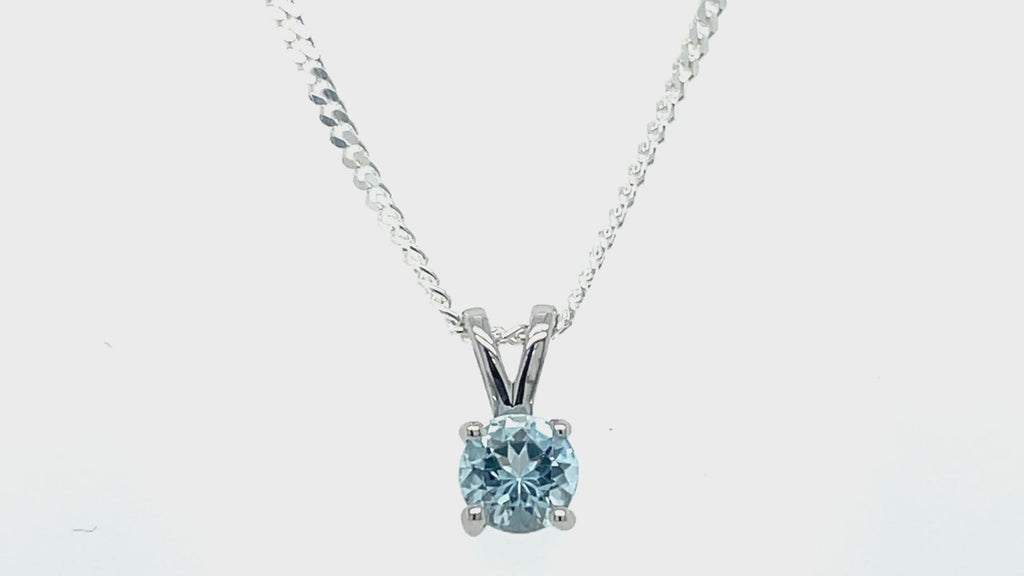 Aquamarine Solitaire Necklace Pendant 0.50ct in 9k White Gold 5.0mm