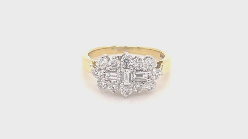 Diamond 1.00ct G/SI Quality 18k Yellow Gold Cluster Ring