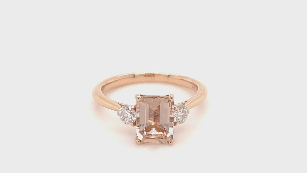 Three Stone Morganite 1.48ct & Diamond 0.31ct Ring in 9k Rose Gold
