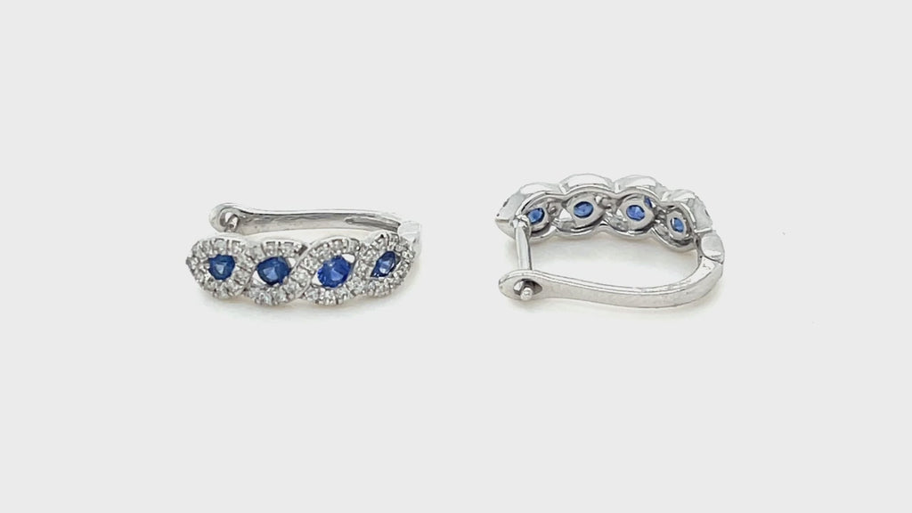 0.65ct Blue Sapphire & Diamond Hoop Earrings in 18k White Gold