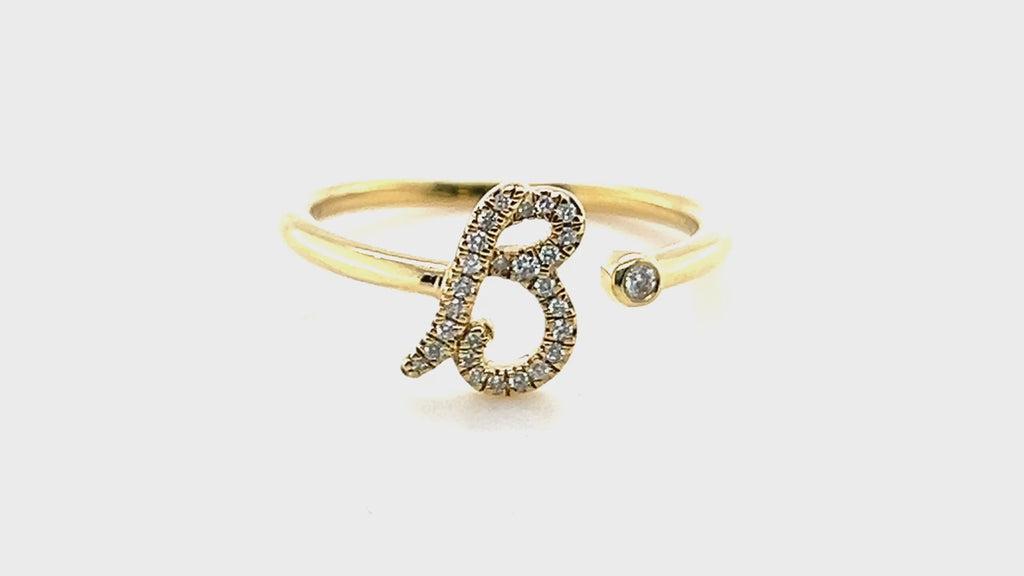Fancy Diamond Initial 'B' Ring 0.11ct G/SI Quality in 9k Yellow Gold