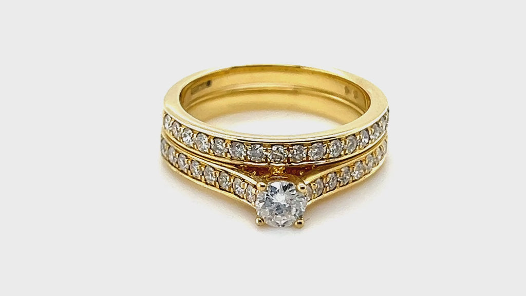 Round Diamond Engagement & Wedding Ring 0.90ct G/SI 18k Yellow Gold - All Diamond