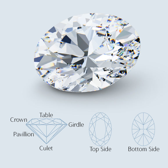 Choosing the right oval diamond is about getting the best light performance, the right shape and good contrast of the patterns within the gem. These are all related to the quality of the cutting. Also, a well-cut oval diamond can hide inclusions and colour shading. You can save money because you can choose slightly lower grades for clarity and colour when the diamond is well cut.