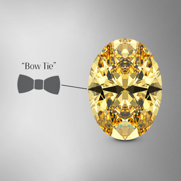 Oval diamonds, in common with other elongated shapes, can exhibit an effect called bow-tie. Bow-tie is the appearance of dark triangular areas on opposite sides of the middle of the gem.