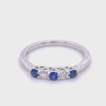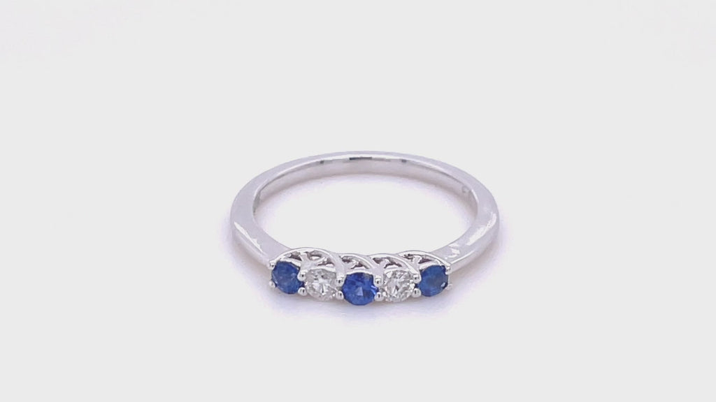 0.25ct Blue Sapphire 0.12ct Diamond Five Stone Ring 18k White Gold