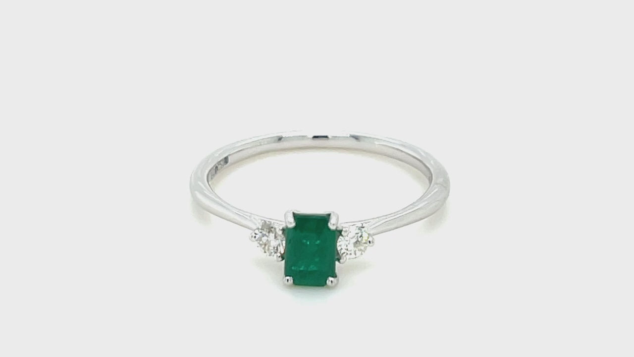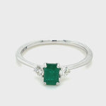 0.50ct Emerald with 0.20ct Diamond Trilogy Ring 18k White Gold