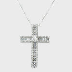 1.10ct Baguette & Round Diamond Cross in 18k White Gold - All Diamond