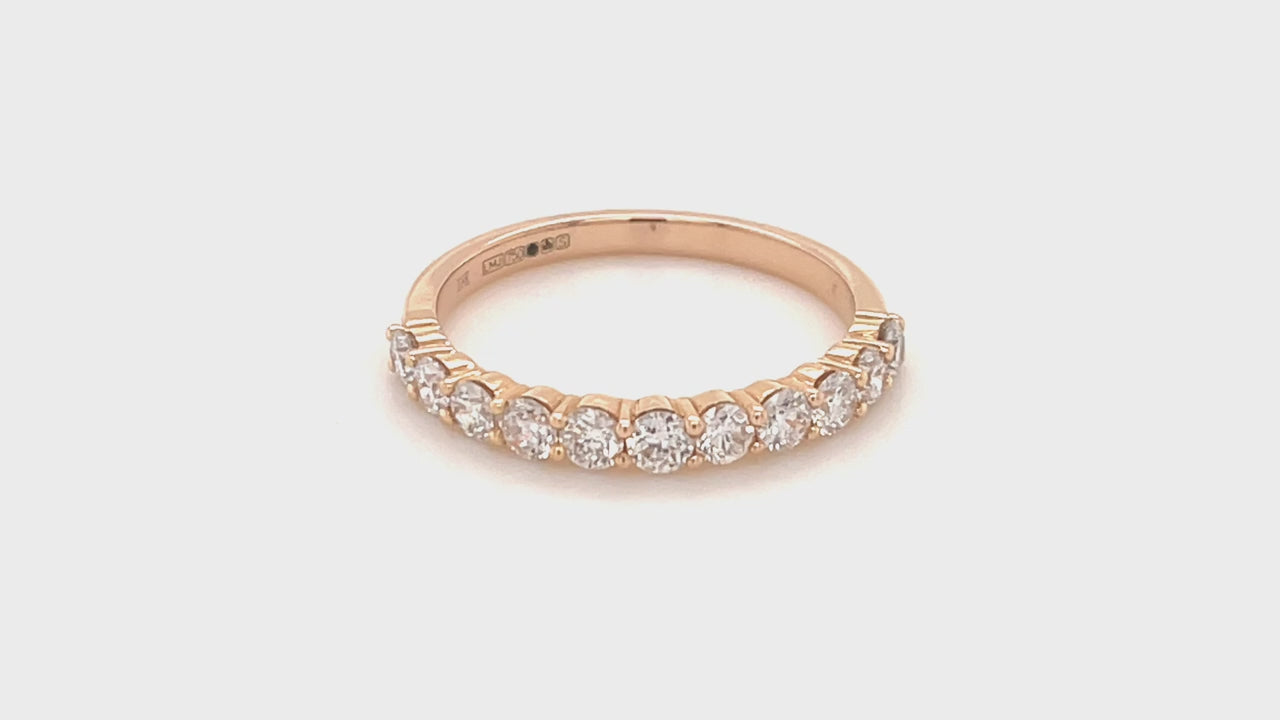 11 Stone Half Eternity Ring 0.75ct G/SI Diamonds in 18k Rose Gold 2.6mm