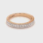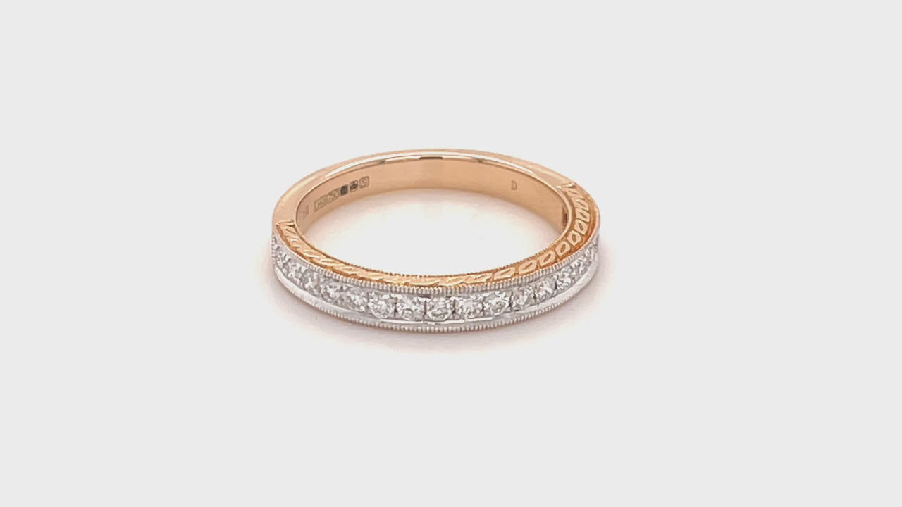 Charmingly share your feelings of affection with this gorgeous piece. Eighteen hand-cut stones of ethically sourced G/SI quality diamond placed in a classic channel setting embedded in warm 18k rose gold. This classic half eternity ring is an eye-catching and romantic token of love that will last for a lifetime, guaranteed.