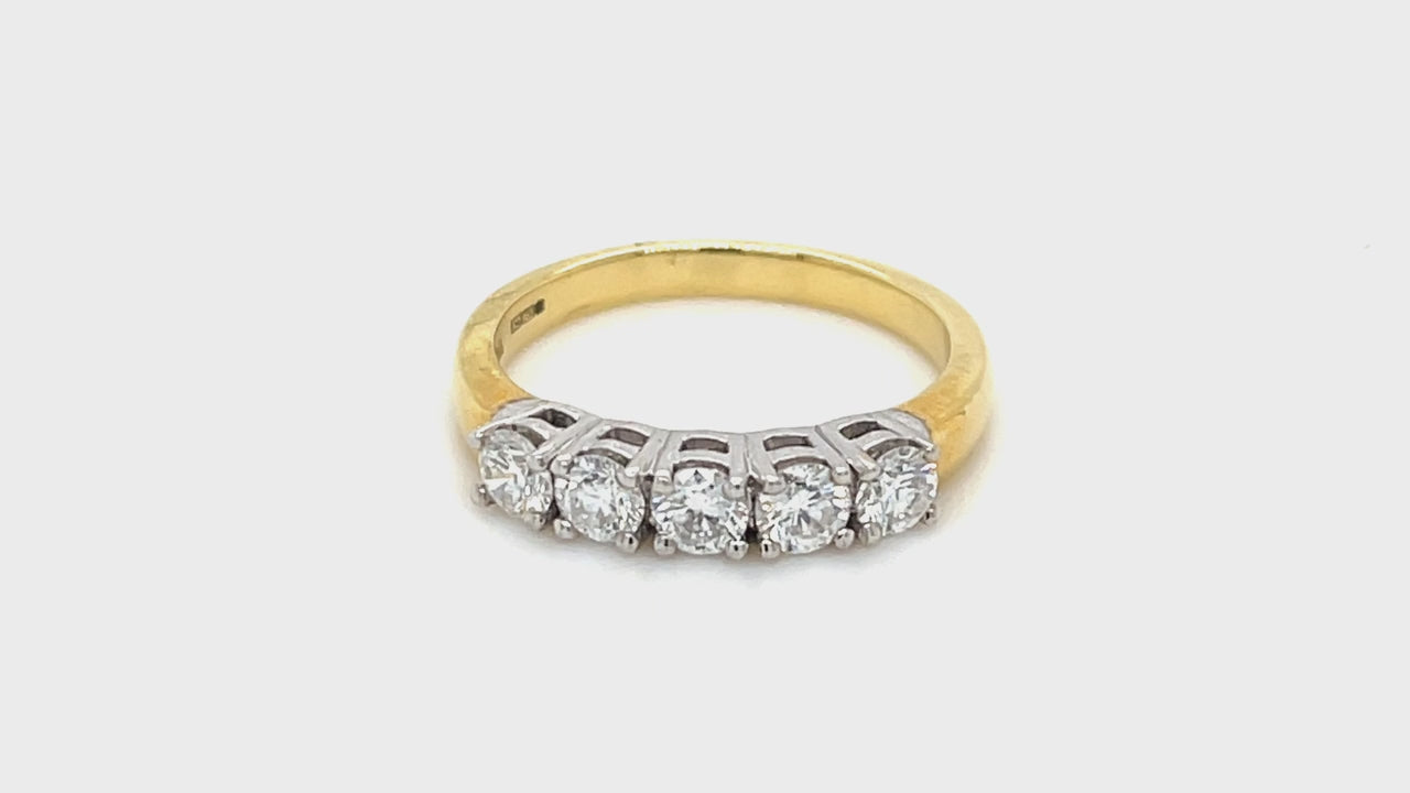 18k Yellow Gold 5 Stone Diamond Eternity Ring 0.80ct in G/SI Quality