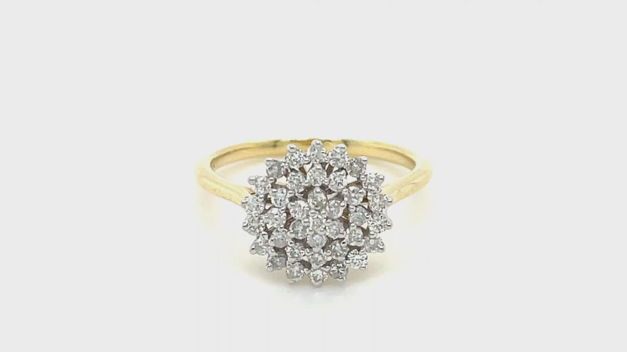 9k Yellow Gold Diamond Cluster Ring 0.60ct G/SI Quality