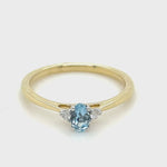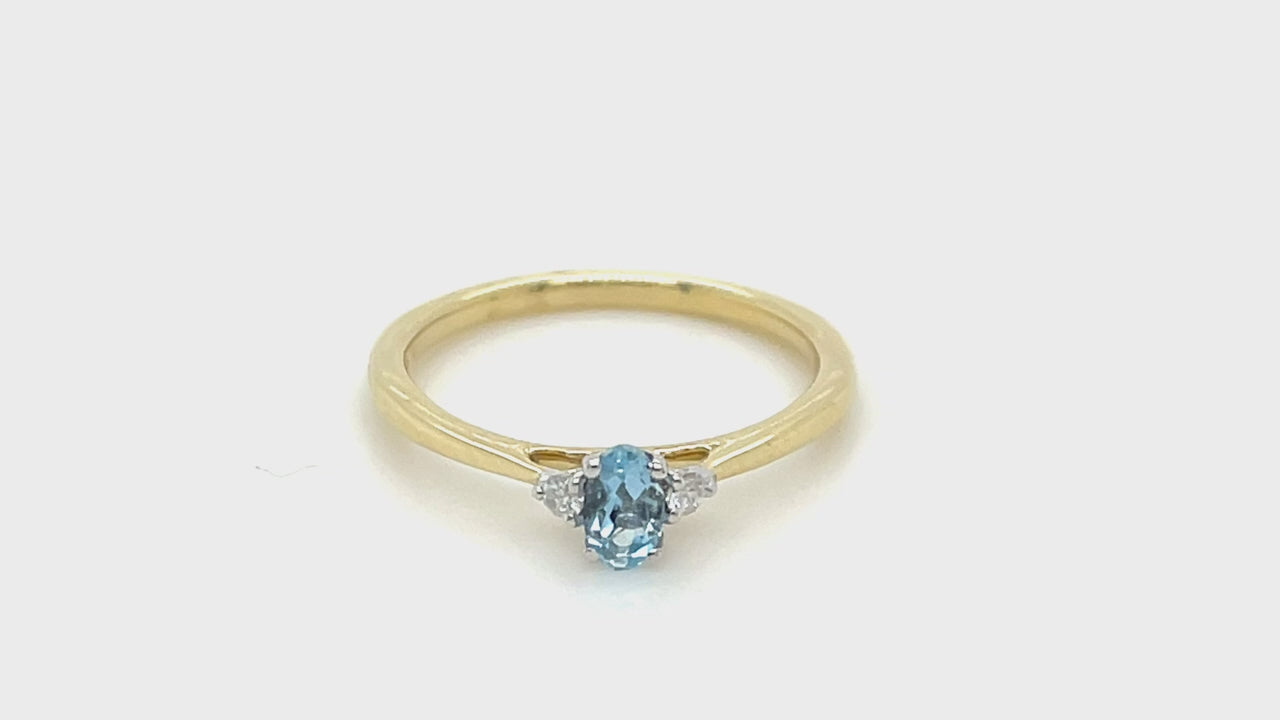 Aquamarine 0.25ct Diamond 0.05ct Three Stone Ring 9k Yellow Gold