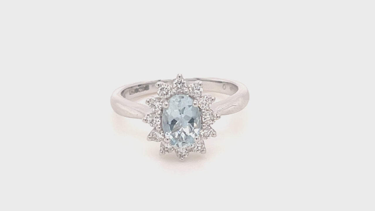 Aquamarine 0.65ct and Diamond 0.31ct Cluster Ring in 18K White Gold