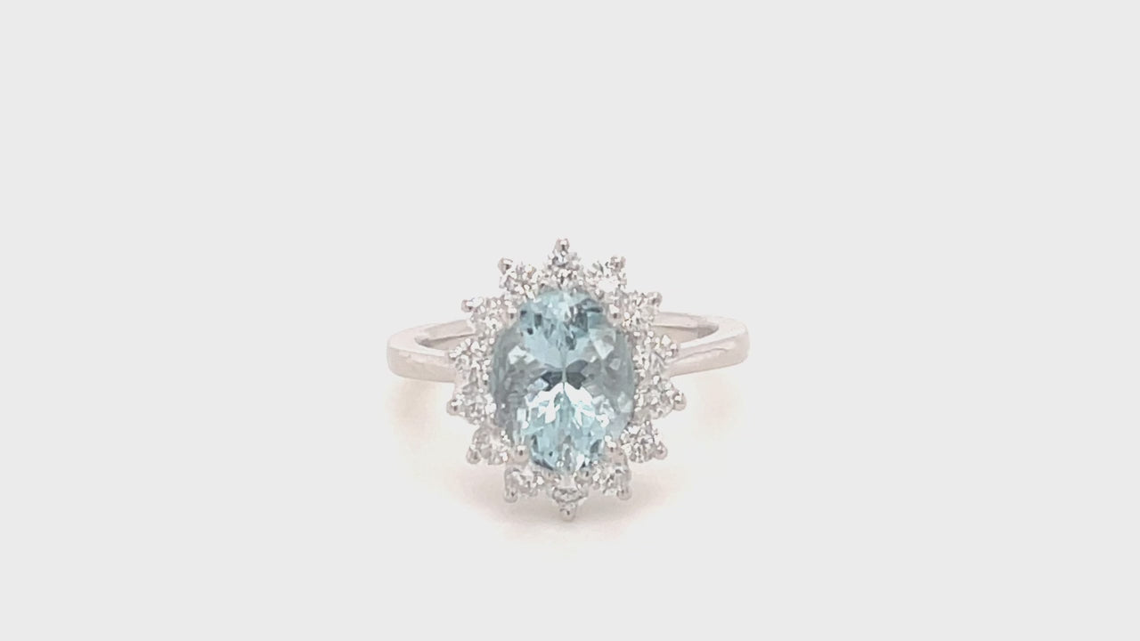 Aquamarine 1.79ct and Diamond 0.54ct Cluster Ring in 18K White Gold
