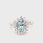 Aquamarine 1.79ct and Diamond 0.54ct Cluster Ring in 18K White Gold - All Diamond