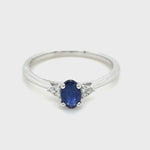 Blue Sapphire 0.55ct Diamond 0.04ct Cluster Ring 9k White Gold
