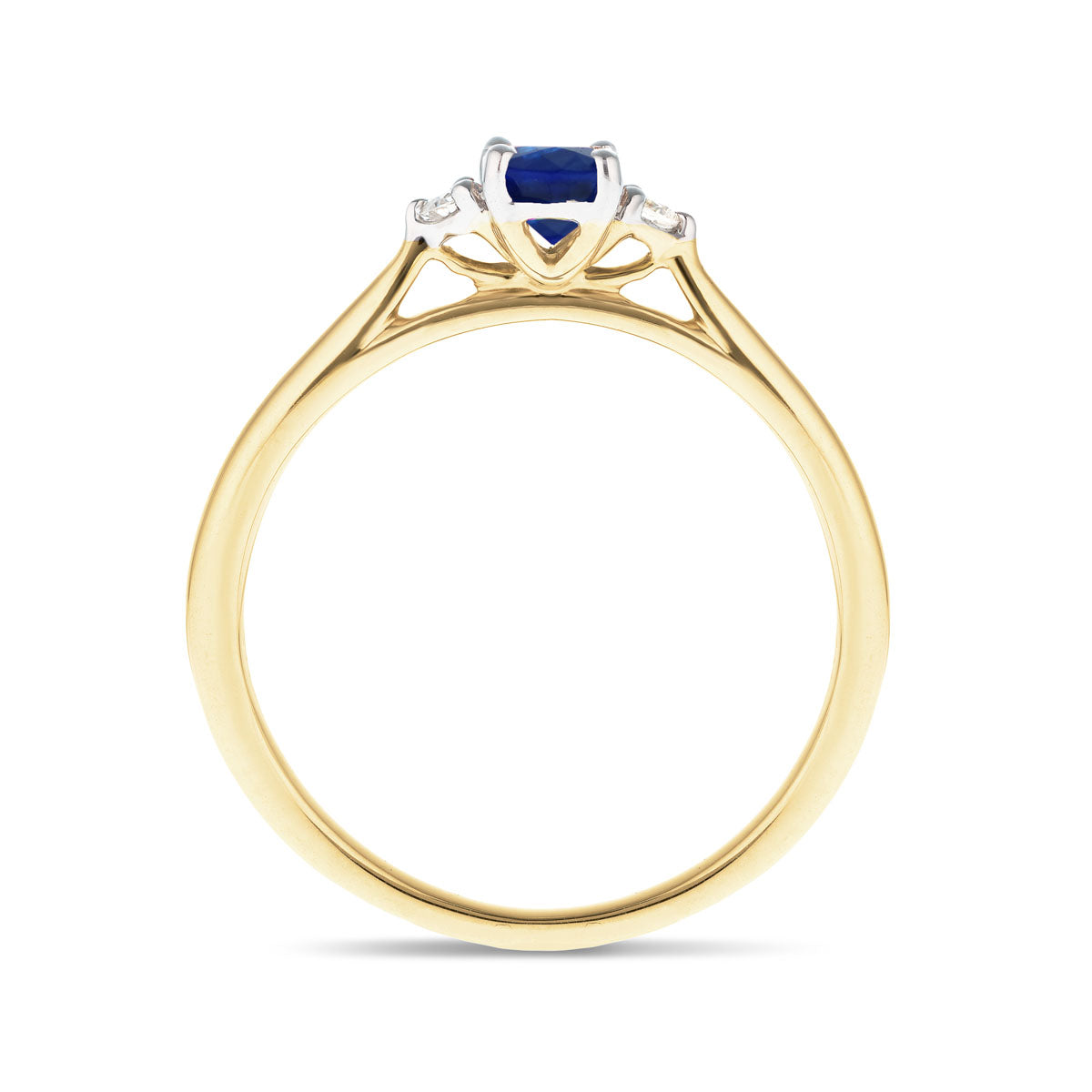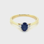 Blue Sapphire 0.60ct Diamond 0.06ct Three Stone Ring 9k Yellow Gold
