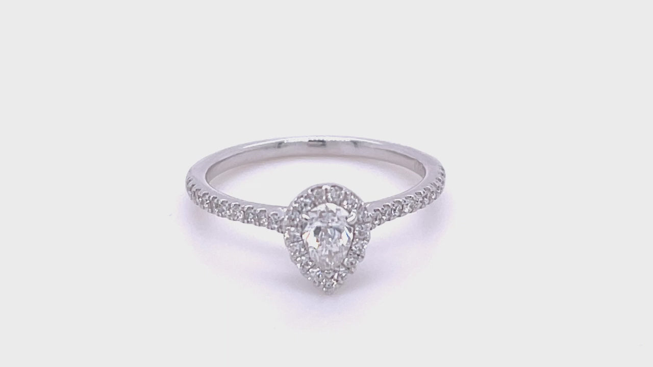 Certified Diamond Halo Pear Engagement Ring 0.50ct Platinum - All Diamond