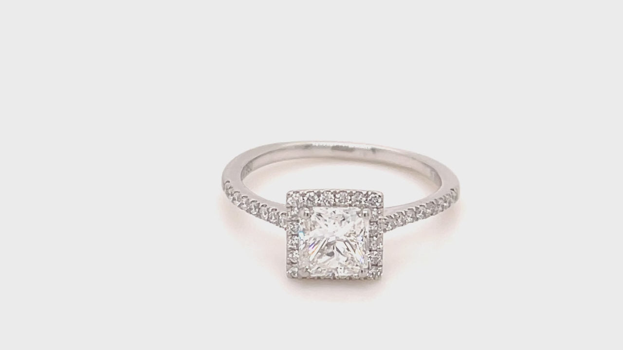 Certified Diamond Halo Princess Engagement Ring 1.25ct 18k White Gold