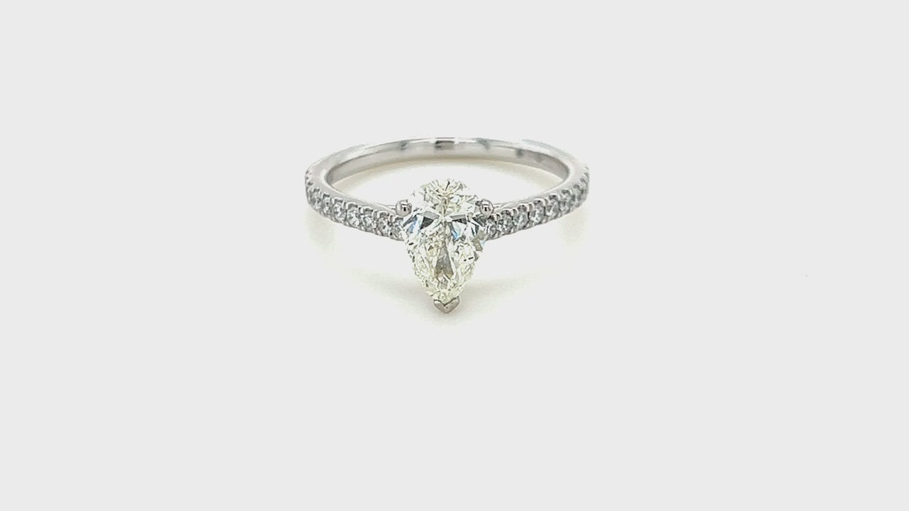 Certified Diamond Pear Side Stone Engagement Ring 1.20ct G/SI 18k White Gold