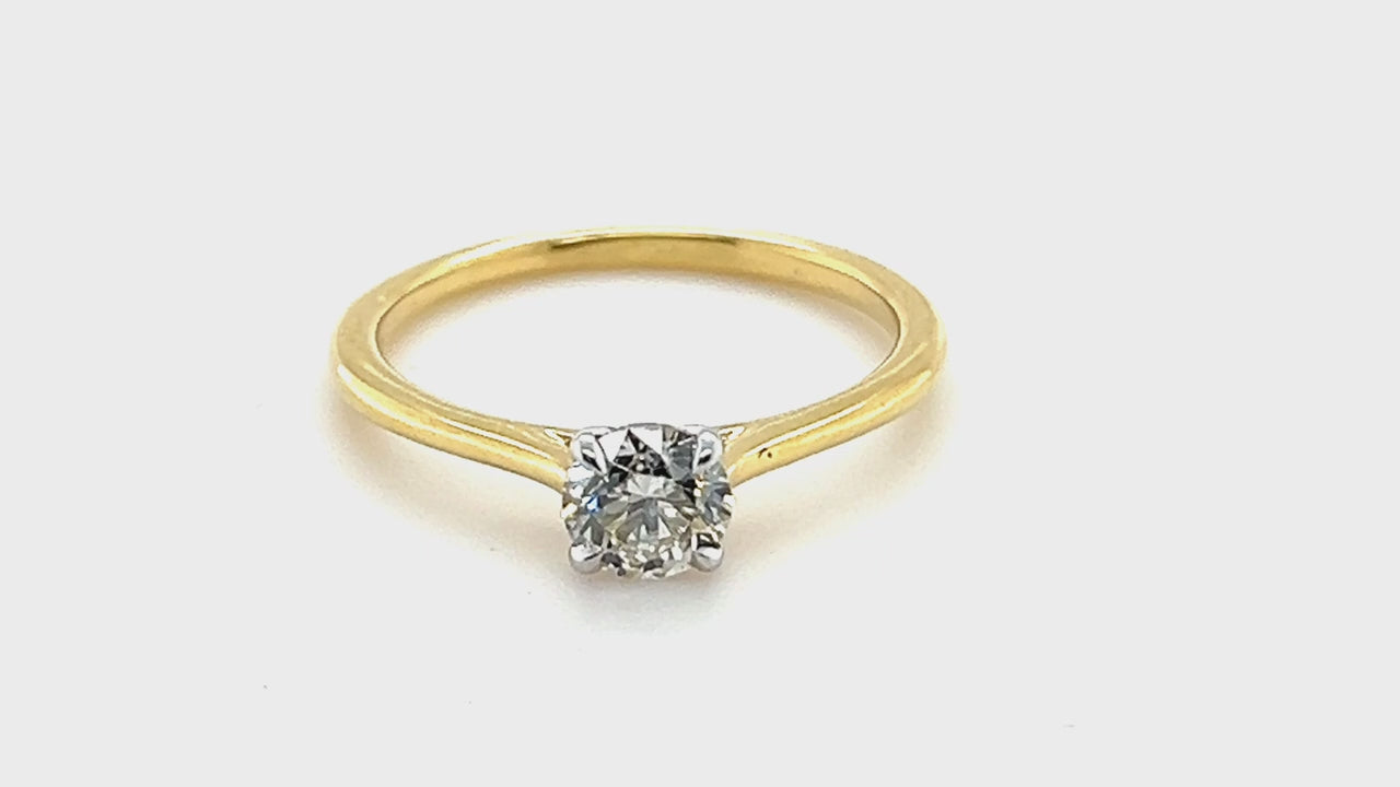 Our elegant yellow gold engagement ring would be an ideal choice as it's a true classic. The ring features a 0.50CT and E/VS quality diamond which is held securely in a claw setting and the ring is made complete by the 18K yellow gold band. This engagement ring was handcrafted in the UK and is conflict-free.