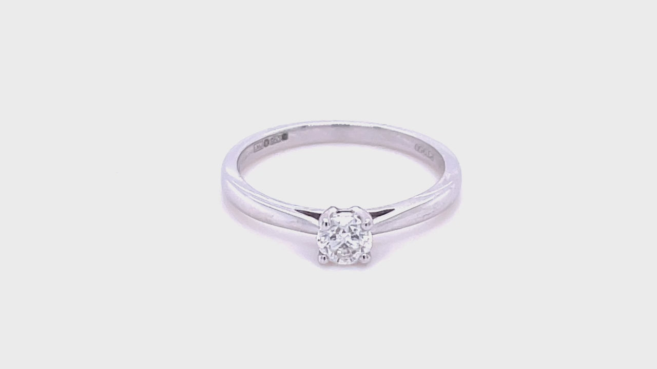 This is an elegant diamond solitaire engagement ring designed and handcrafted in the United Kingdom. The band is made from UK hallmarked platinum and the EDR certified diamond is of G/SI quality, weighing 0.33 carats. This is an engagement ring designed to give pleasure for decades to come. When you buy this ring we provide you with a diamond grading certificate from EDR. We provide extra peace of mind with our lifetime workmanship guarantee and an individual insurance valuation report.