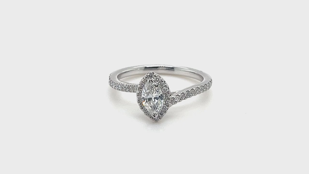 Certified Twist Marquise Diamond Halo Engagement Ring 0.60ct G/SI in 18k White Gold