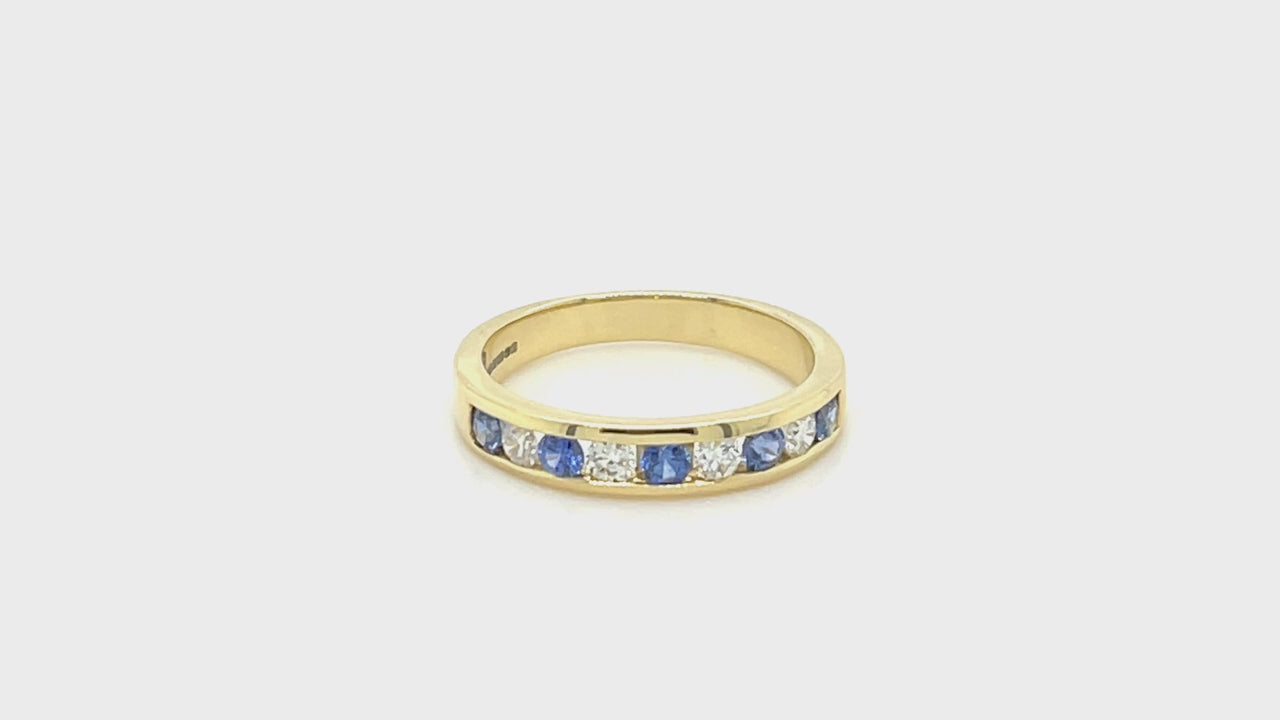 Channel Sapphire & Diamond Half Eternity Ring 0.55ct 18k Yellow Gold