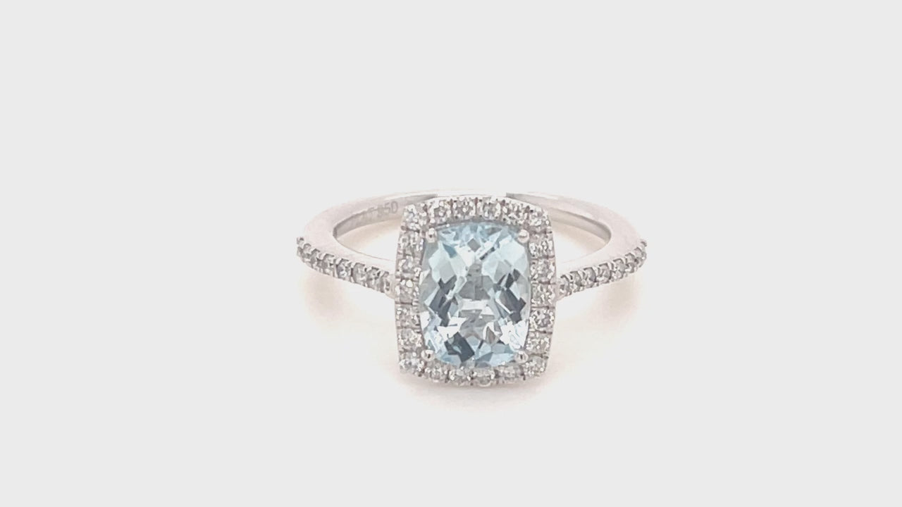 Cushion Halo Aquamarine 1.21ct & Diamond 0.32ct Ring in Platinum