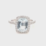 Cushion Halo Aquamarine 2.33ct & Diamond 0.53ct Ring in 18K White Gold - All Diamond