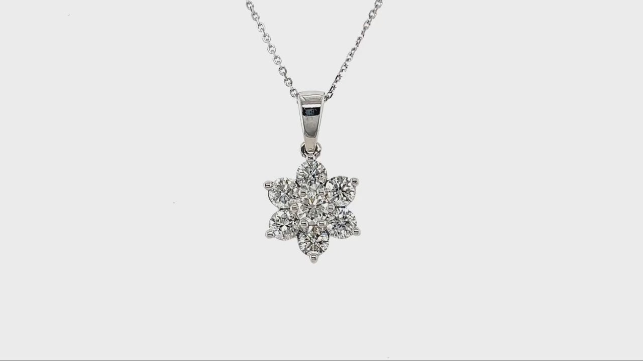 Daisy Diamond Cluster Pendant Necklace 1.00ct G/SI 18k White Gold