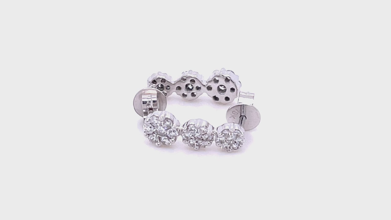 Wherever you go, diamonds will follow. A shining star in every outfit, these all-diamond cluster drop earrings are a statement piece that will be an instant win! Fine quality with UK hallmarked 18k white gold making them as durable as they are beautiful durable, they are a perfect pick for any occasion. The total of 0.50 carats of natural diamonds in G/SI quality makes them shine like the sun and gives them an extra sparkle. Wear these earrings with your favourite dresses this season and feel their majestic presence!
