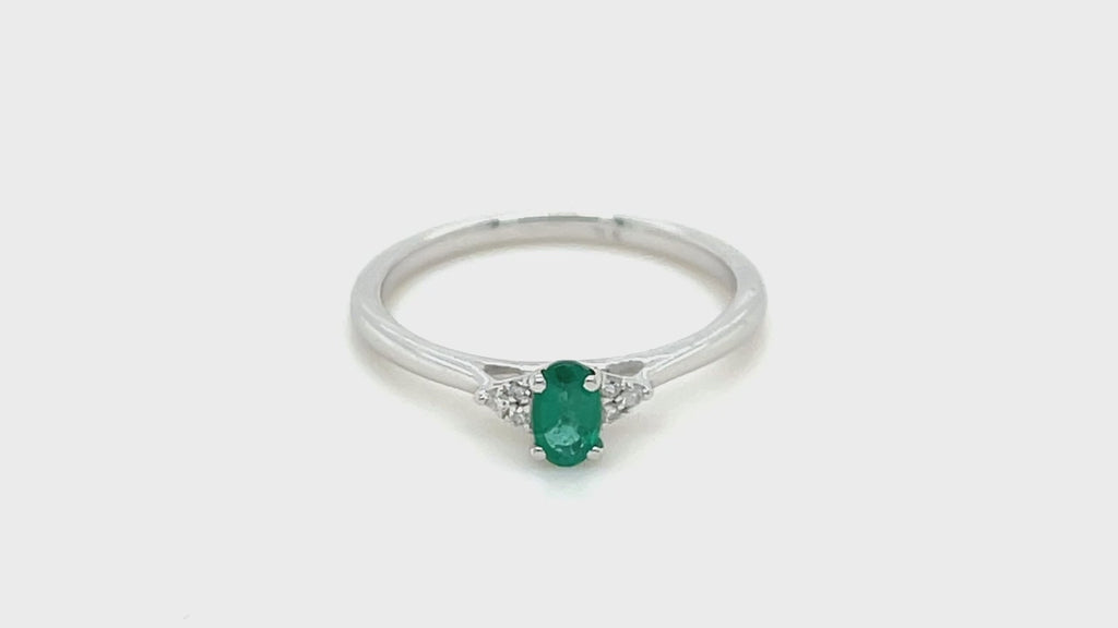 This lovely ring is a wonderful representation of love and dedication. The emerald has been dedicated as the birthstone for May. Two clusters of G/SI graded white diamonds totalling 0.03 carats border the stunning green emerald, which measures 0.25 carats. The 9k white gold used to make the band has a UK hallmark. This handcrafted, UK-designed ring will fit your hand like a glove. Handmade and created in the UK this is a lovely emerald and diamond cluster ring.
