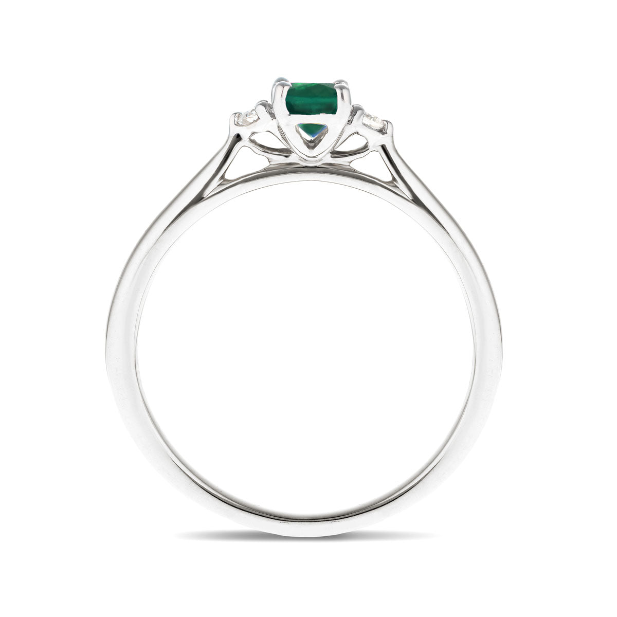 Emerald 0.50ct Diamond 0.06ct Three Stone Ring 9k White Gold