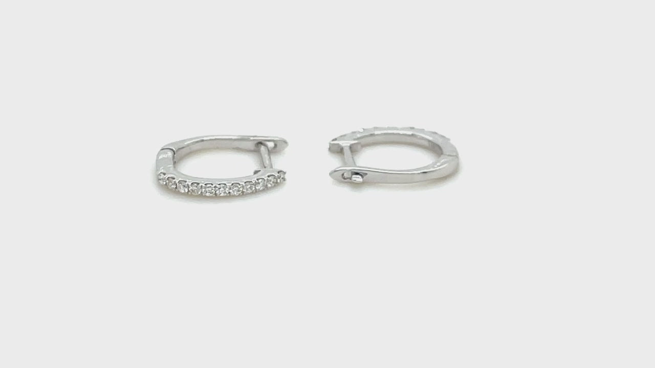 These fancy and elegant diamond hoop earrings are perfect for everyday wear because they are durable and sit comfortably on your ears. Beautifully handcrafted in the UK in 18k white gold settings and featuring 0.15ct of ethically sourced G/SI quality diamonds set in the white gold metal circumference in a claw setting for a dazzling, striking look. Offered with pride and the reassurance of a lifetime guarantee, these earrings will bring you many years of pleasure.