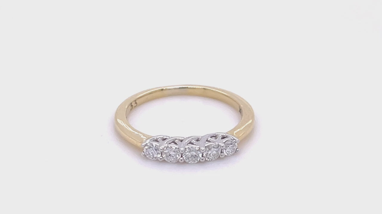 Five Stone Diamond Ring with 0.30ct G/SI Quality in 18k Yellow Gold