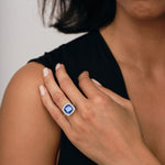 Halo Cushion Tanzanite 5.37ct and Diamond 1.00ct Ring in Platinum