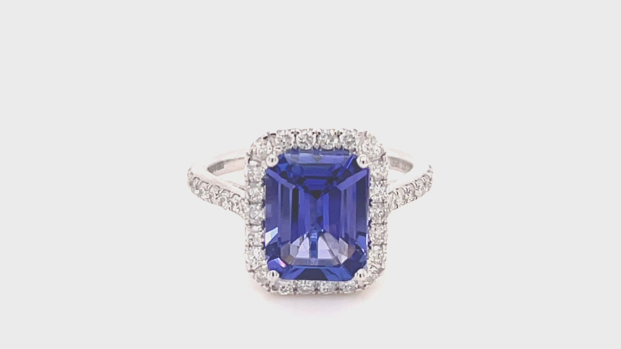 Halo Tanzanite 4.86ct and Diamond 0.53ct Ring in 18K White Gold