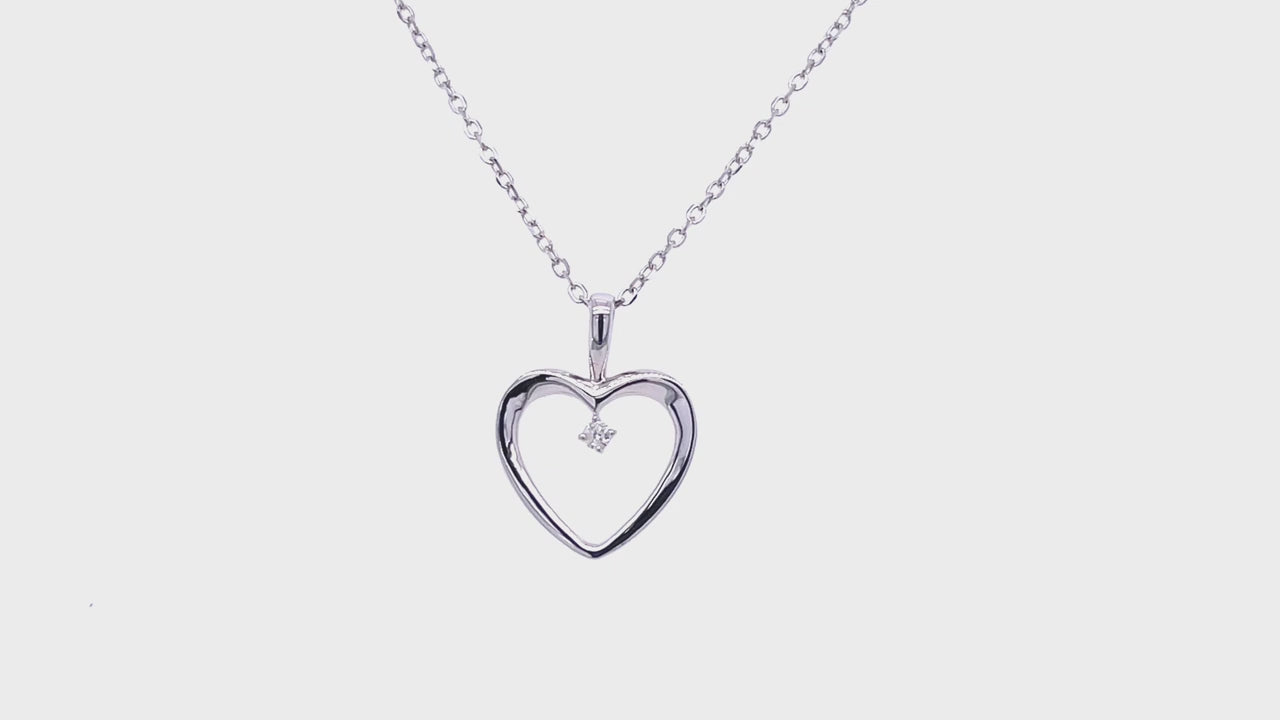 Heart Pendant 0.02ct Diamond 9K White Gold