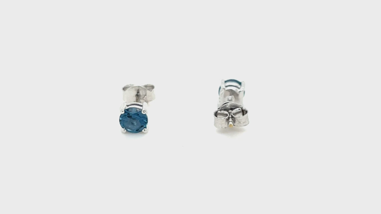 London Blue Topaz Solitaire Earrings 1.10ct in 9k White Gold 5.0mm - All Diamond