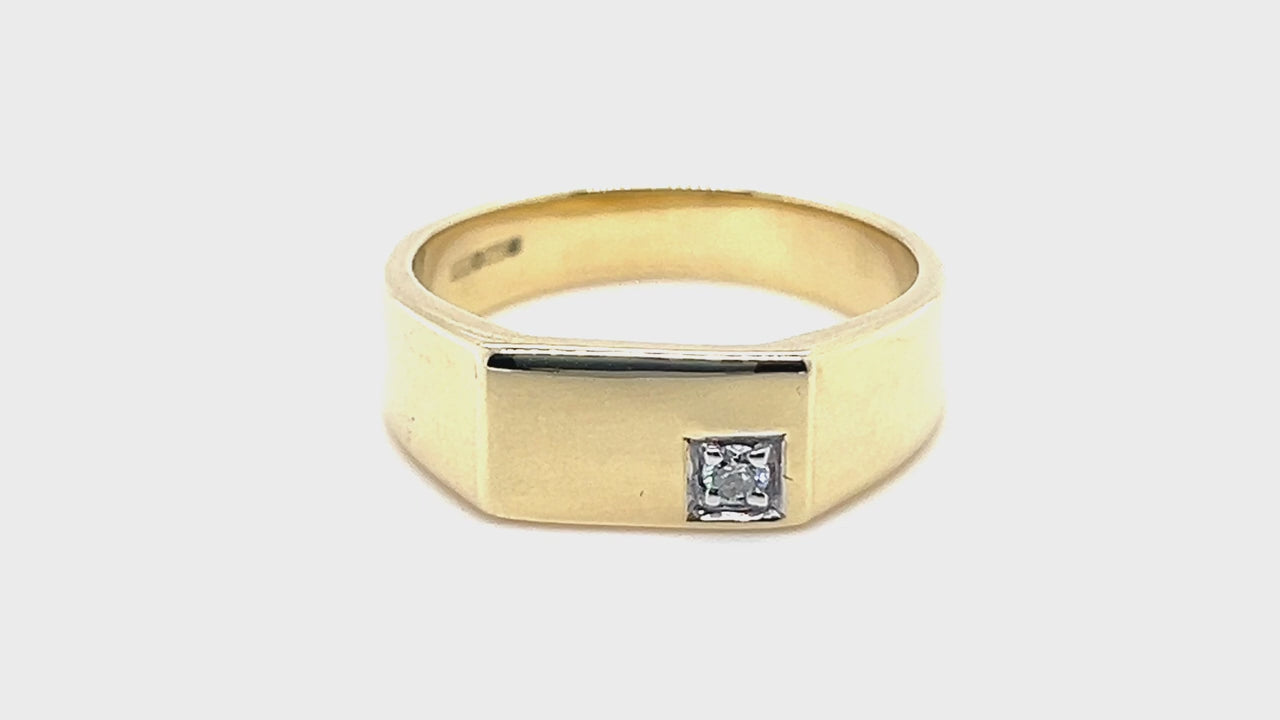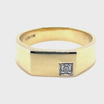 Mens Single Diamond Signet Ring 0.06ct G/SI Quality 9k Yellow Gold