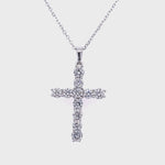 Modern Diamond Cross Pendant Necklace 1.00ct in 18k White Gold - All Diamond