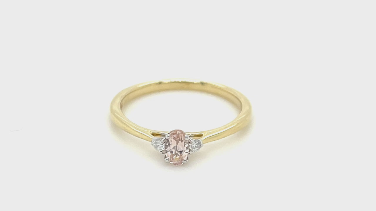 Morganite 0.30ct Diamond 0.05ct Three Stone Ring 9k Yellow Gold