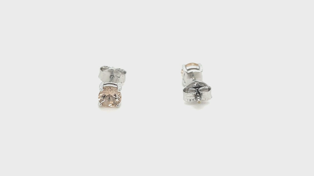 Morganite Solitaire Earrings 0.90ct in 9k White Gold 5.0mm - All Diamond