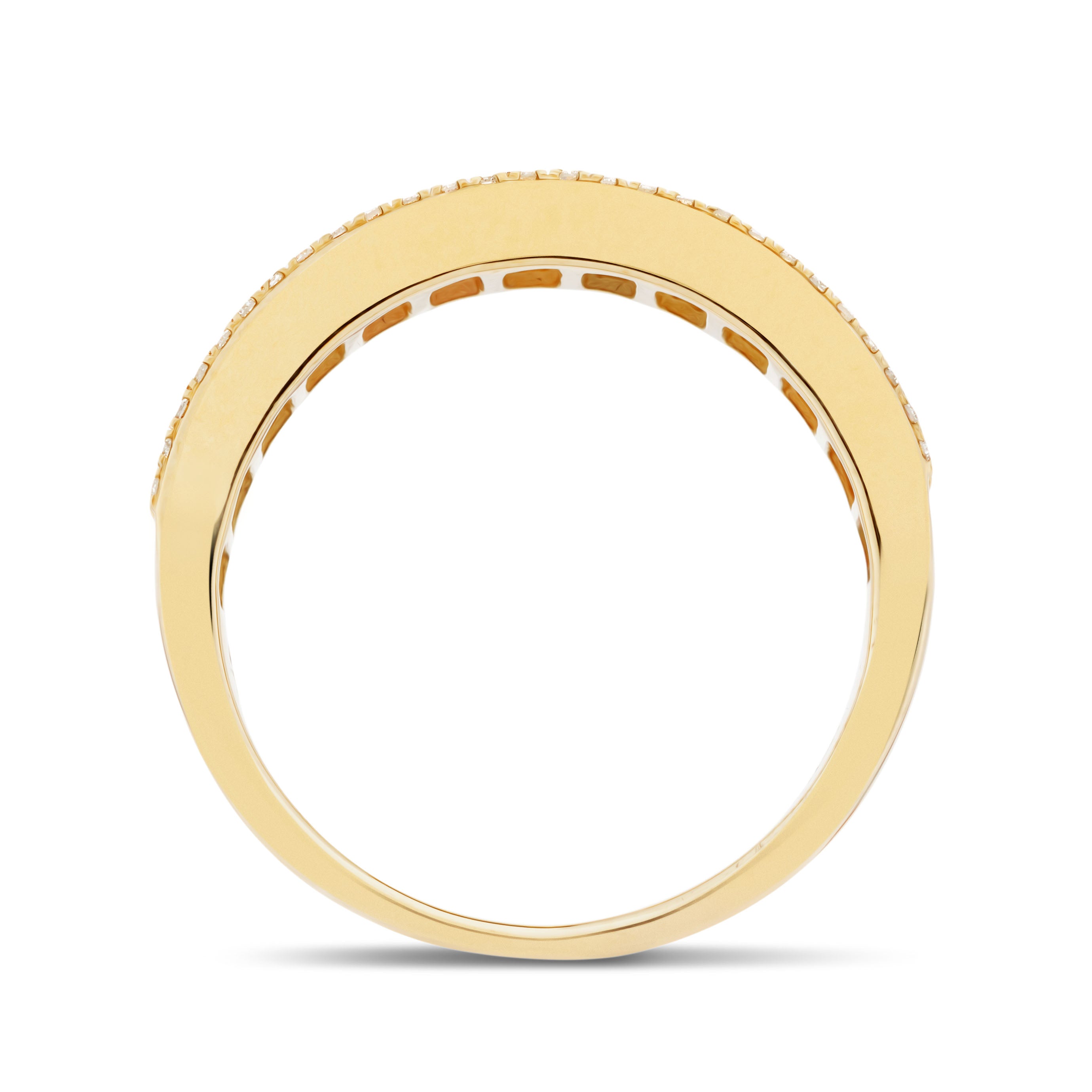 This is the eternity ring you're looking for when you look for something that will stand out from all the rest. This colourful sapphire and diamond eternity ring features a beautiful array of sapphires in vibrant colours accented with two rows of G/SI quality diamonds. The diamonds weigh a total of 0.25 carats and the sapphires have a combined weight of 0.90 carats all set in a 9k yellow gold band.