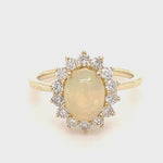 Opal 1.12ct and Diamond 0.52ct Cluster Ring in 9K Yellow Gold - All Diamond